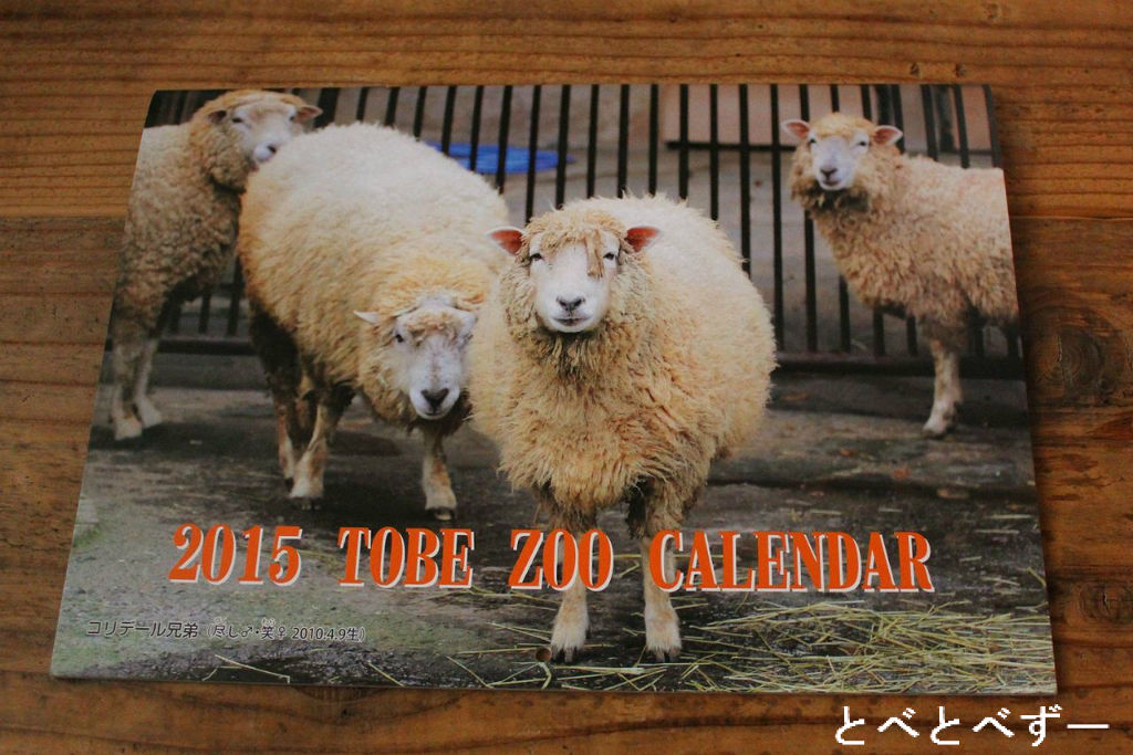 ピースのカレンダーの横に、とべ動物園のカレンダーも。来年の干支は未年(ひつじ)ですね。と言う事で、表紙は羊のコリデール兄弟が飾っています。カレンダーをめくっていくと・・・