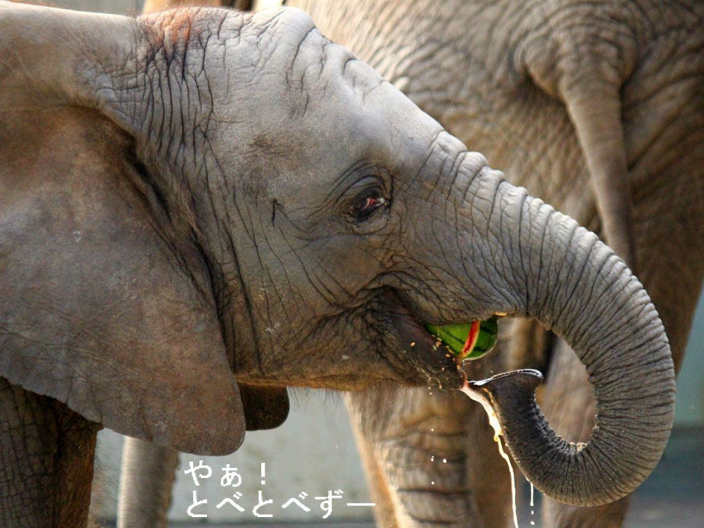 大事そうにスイカを鼻で抱えて戦線を離脱していきます。