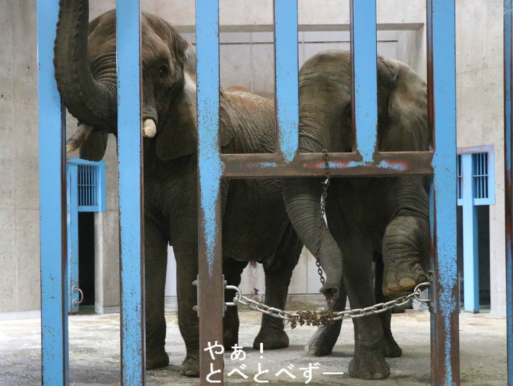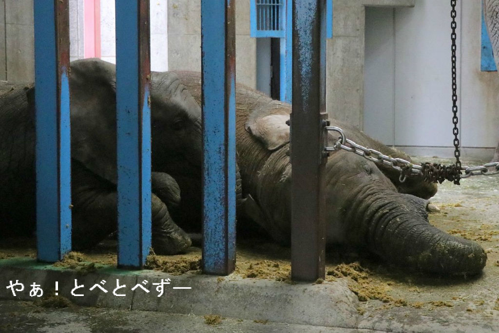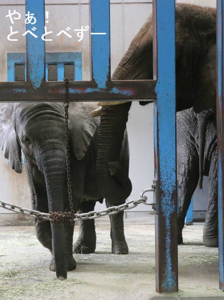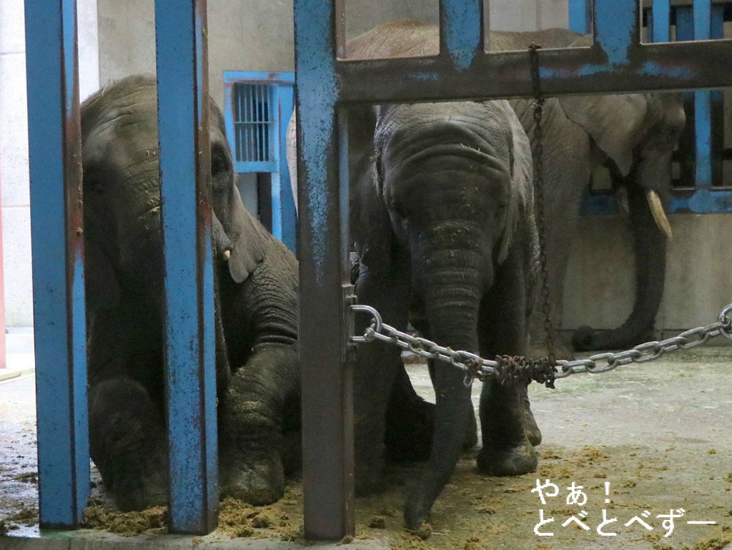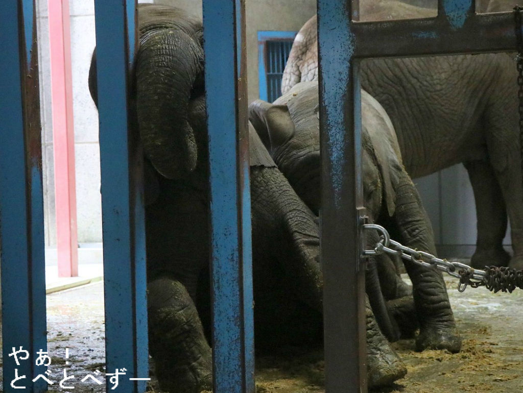 アフ父さんの部屋の開放、後日行った時は行われていなかったので、この状況が見れるのは運次第の様です。寒い時、雨が降っている時に狙ってみる?!←これも、アフリカゾウ舎の工事が終了(3月中旬予定)した後は、まったく読めないので、それこそ今だけかもしれません。