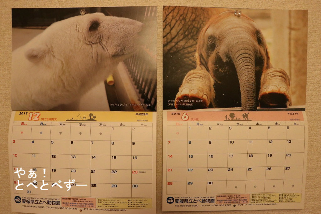 2018年のとべ動物園公式カレンダーです。とべ動物園で飼育されている動物の写真が月替わりで載っています。このとべ動物園のカレンダー、好きで毎年飾っています。各月の動物は、その月が誕生日の子が掲載されている事が多いですよ。