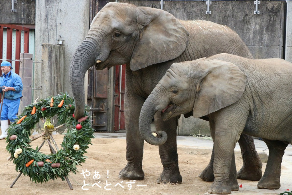 <とべ動物園アフリカゾウの仲良し姉妹:媛ちゃん、砥愛ちゃん>