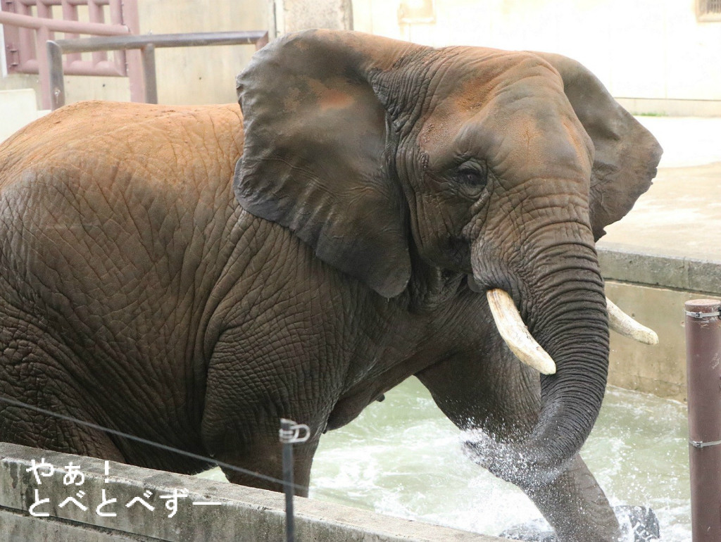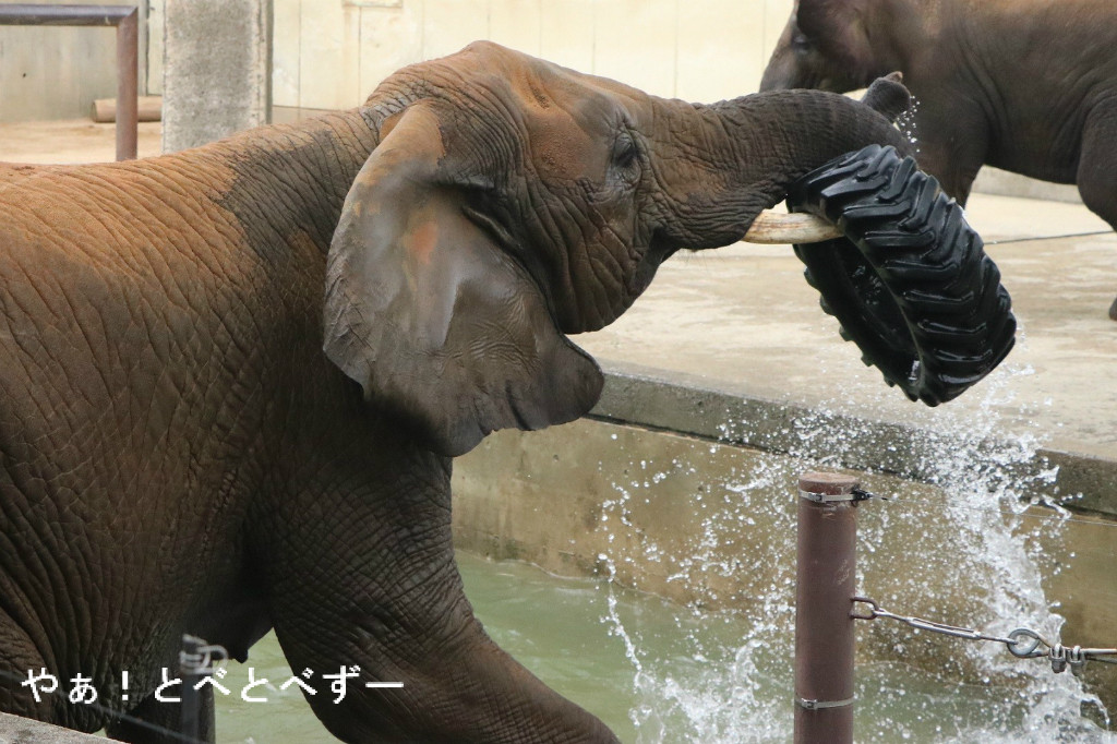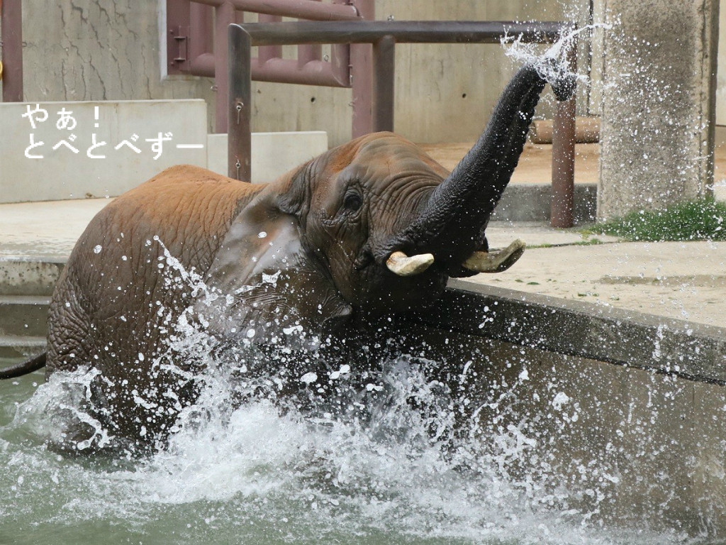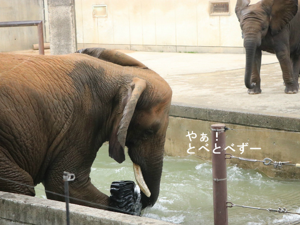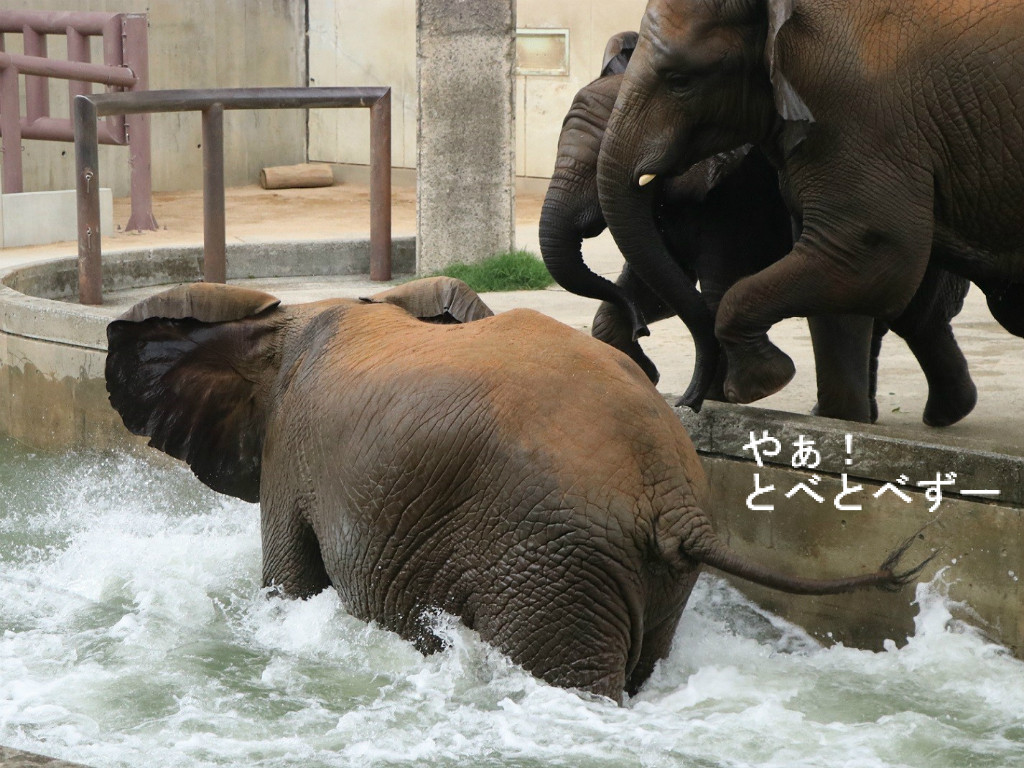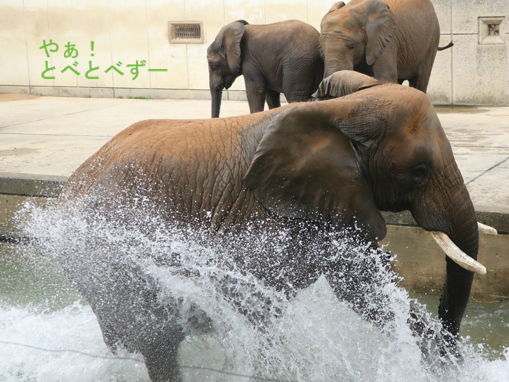 この日はプールに水が入っており、朝から親子3頭でザブンザブンと遊んでいました。
