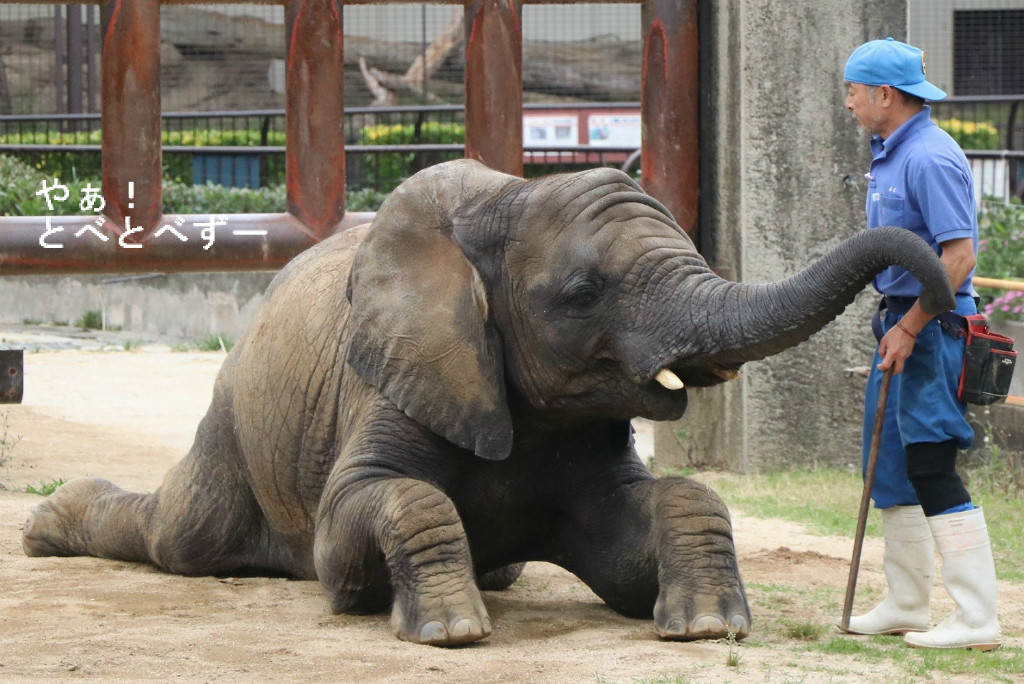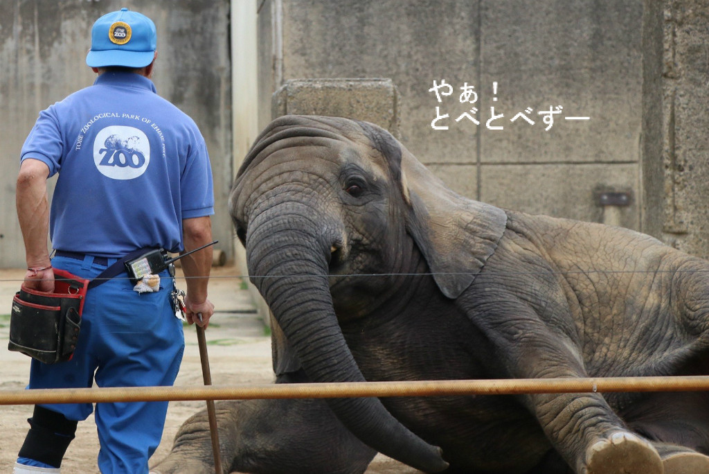 <とべ動物園アフリカゾウのレジェンド飼育員さんと末娘の砥愛ちゃん>