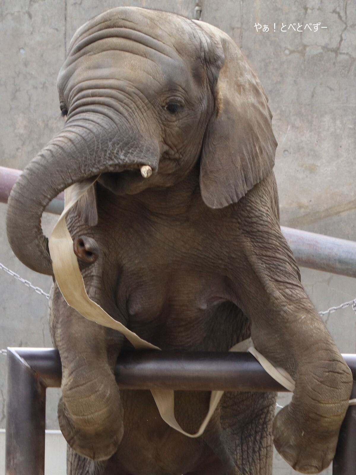 砥愛ちゃん、ホースが鼻の所でぐるりと一周回っていますよ!一体どんな遊び方をしていたんだか♪
