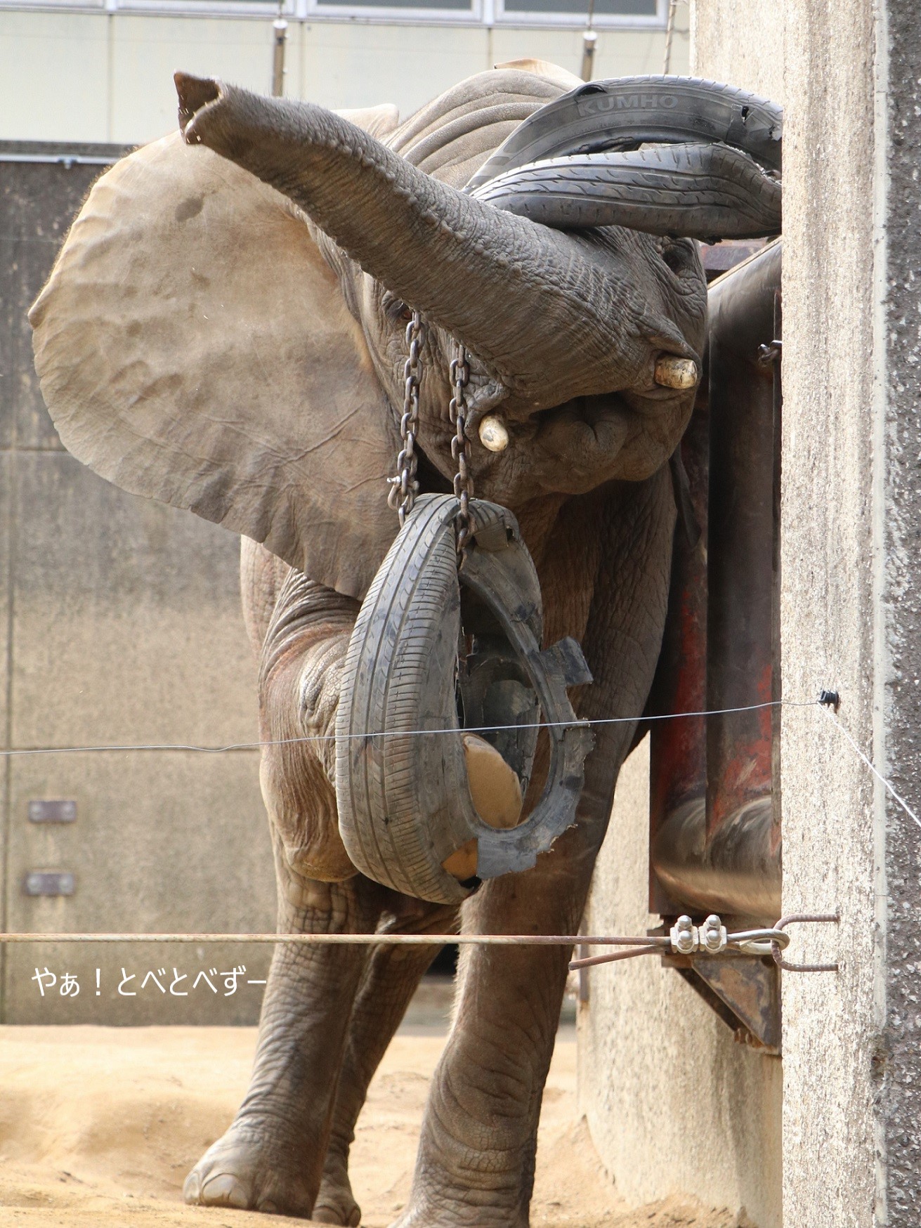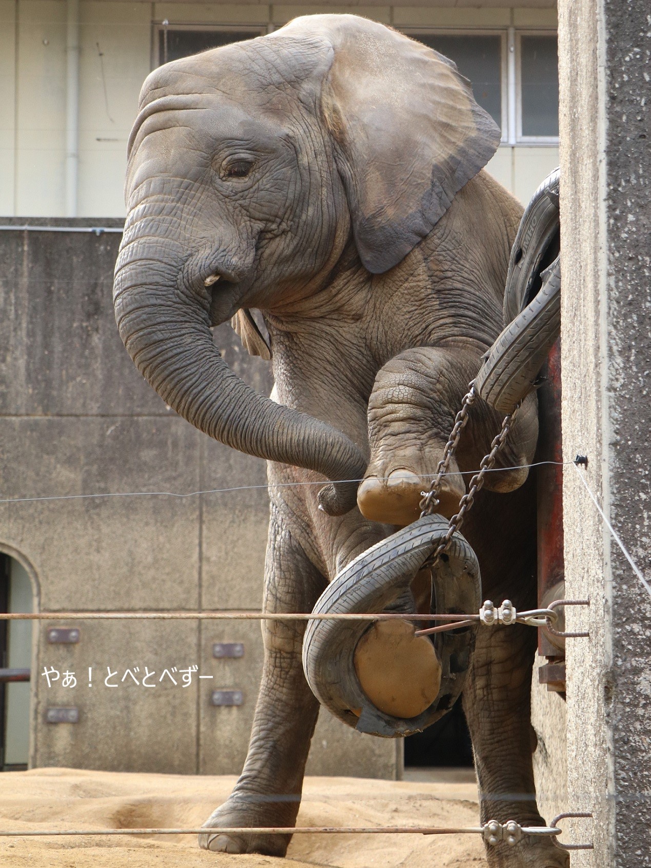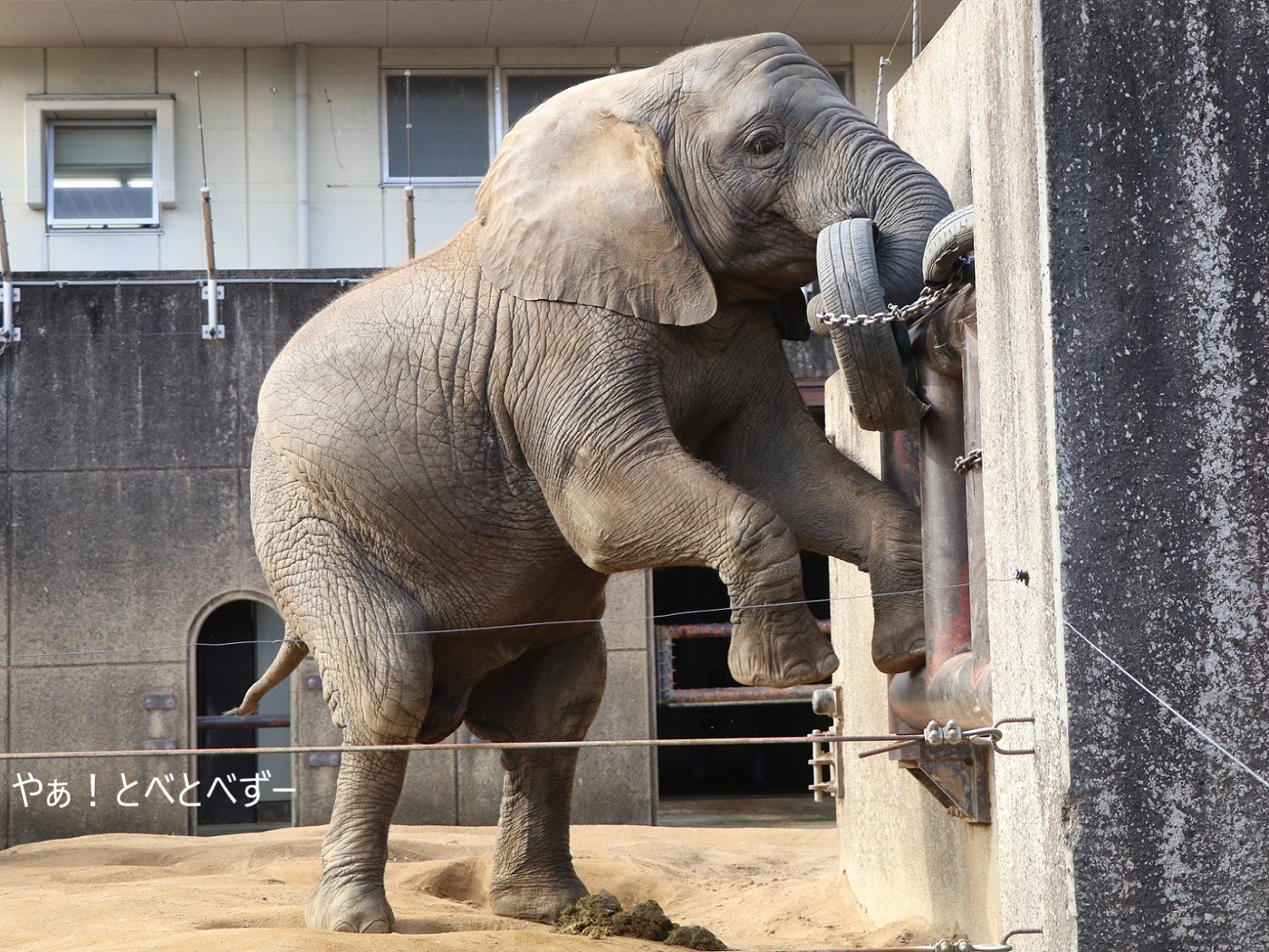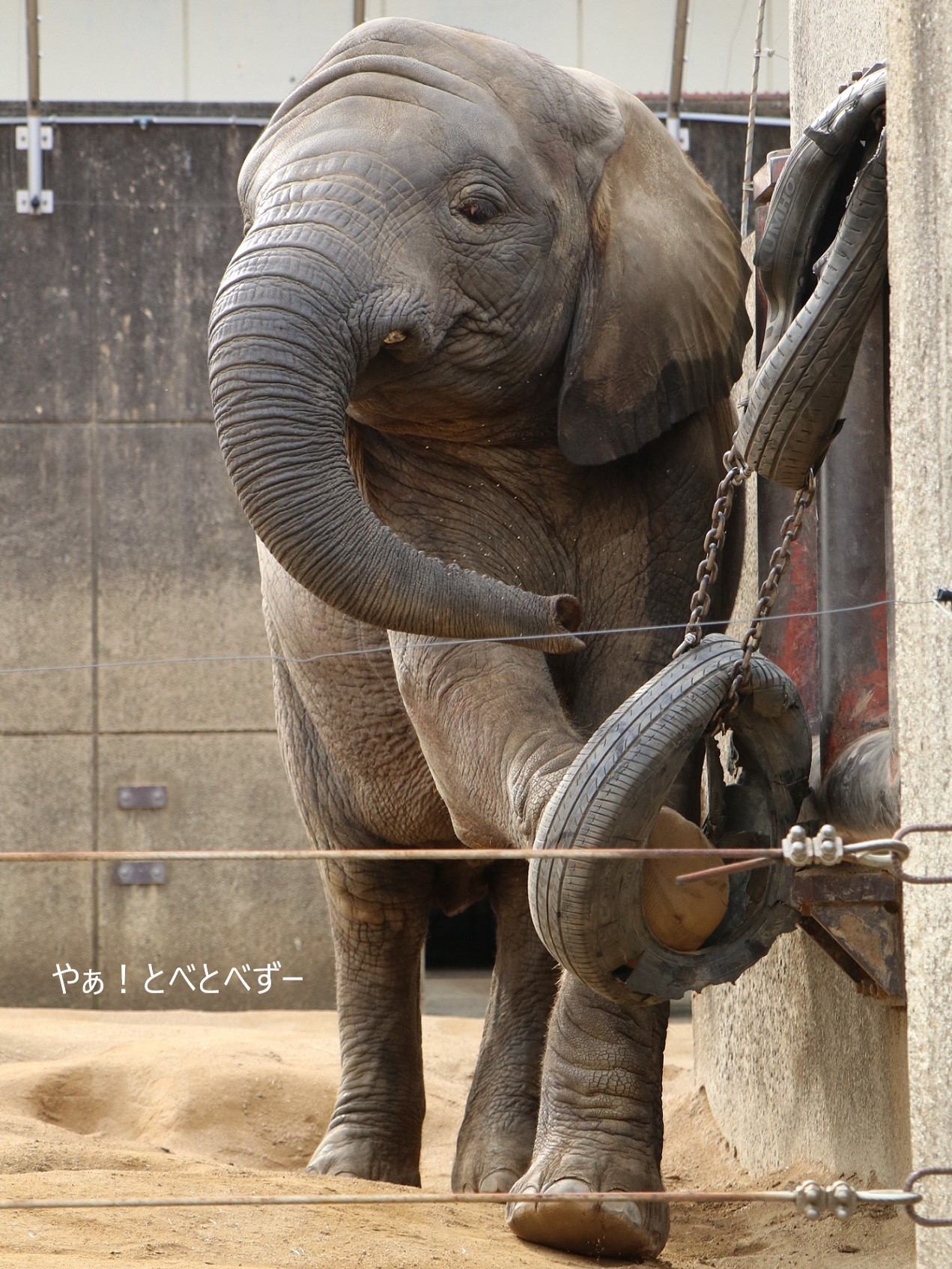 やりたい放題、遊びたい放題の砥愛ちゃんでした。<ケのFacebookより、アフリカゾウの親子:リカ母さん、媛ちゃん♪>