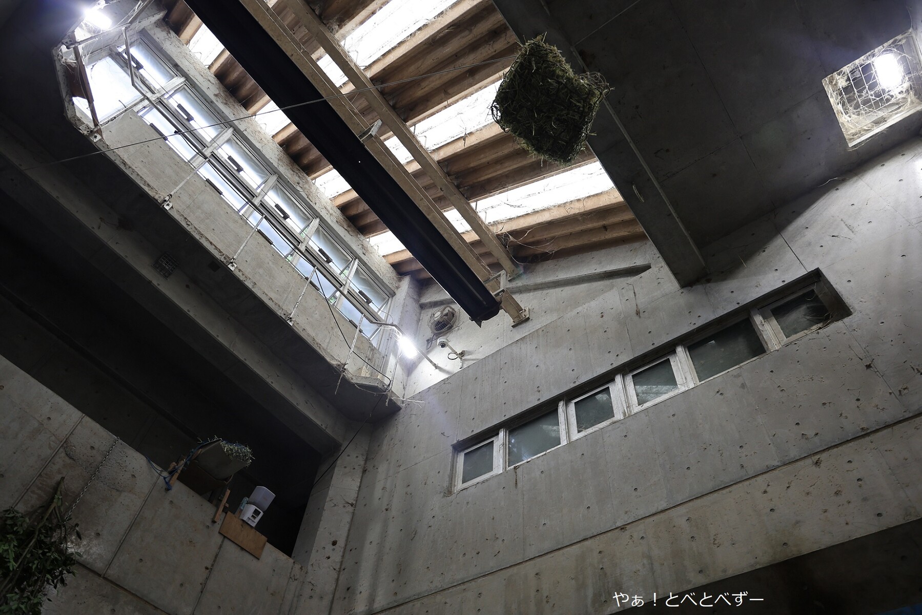 と、いつもと逆?のゾウ舎内に居るケ達を運動場から眺める媛ちゃんと砥愛ちゃん。