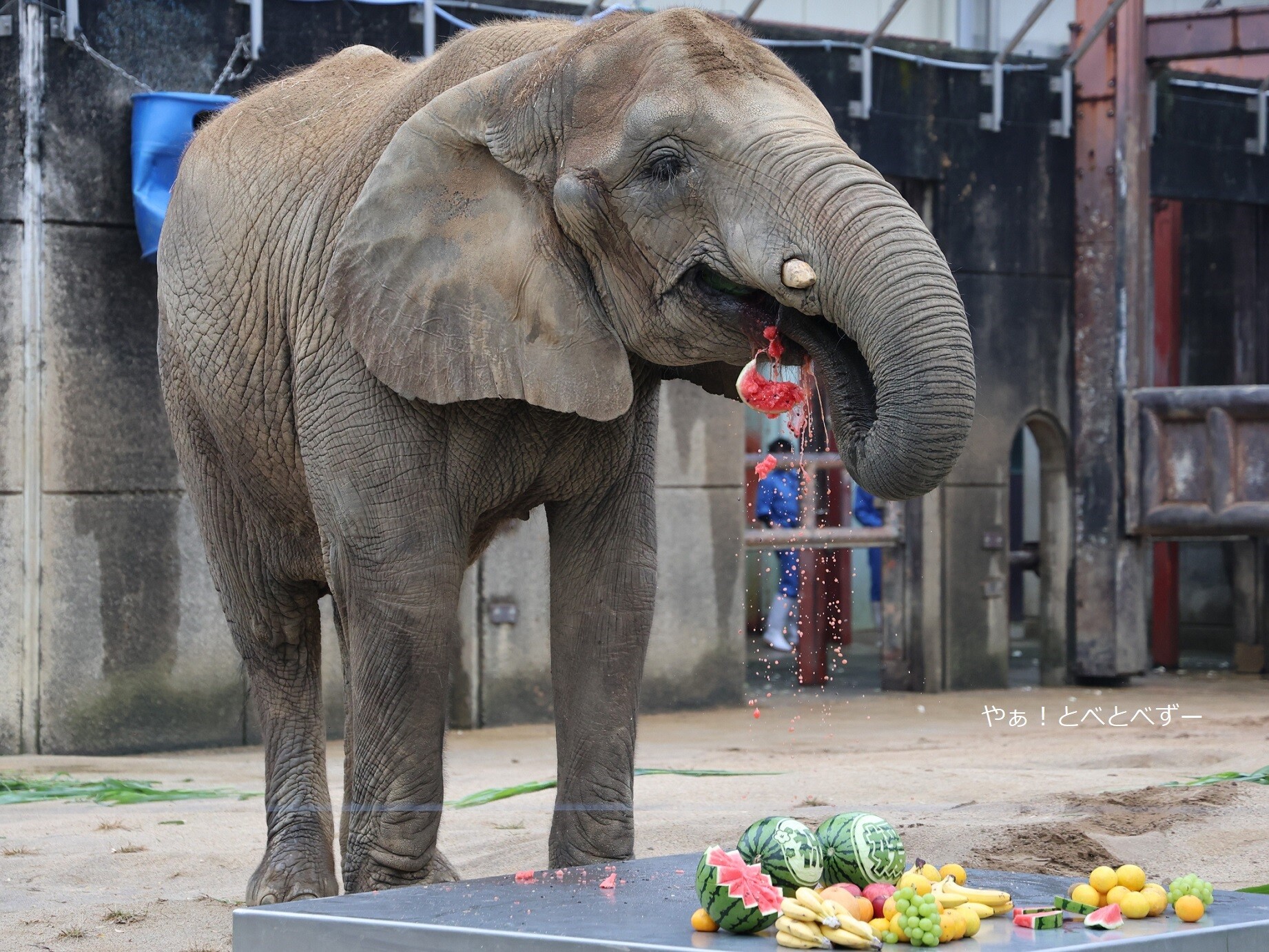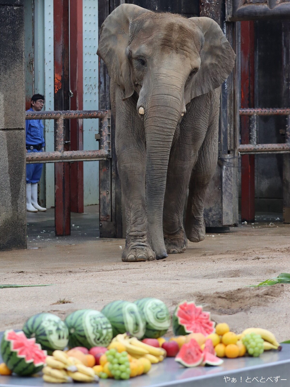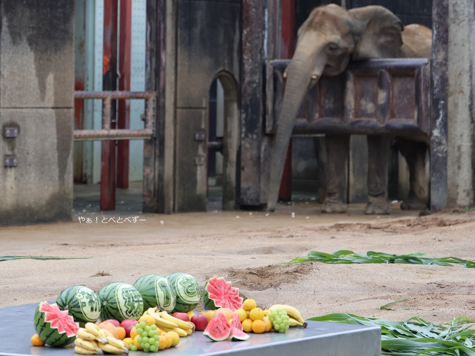 として持って行きました。それにしても、スイカのカービングが見事ですよね!飼育員さんが施したのでしょうかね。凄い!!