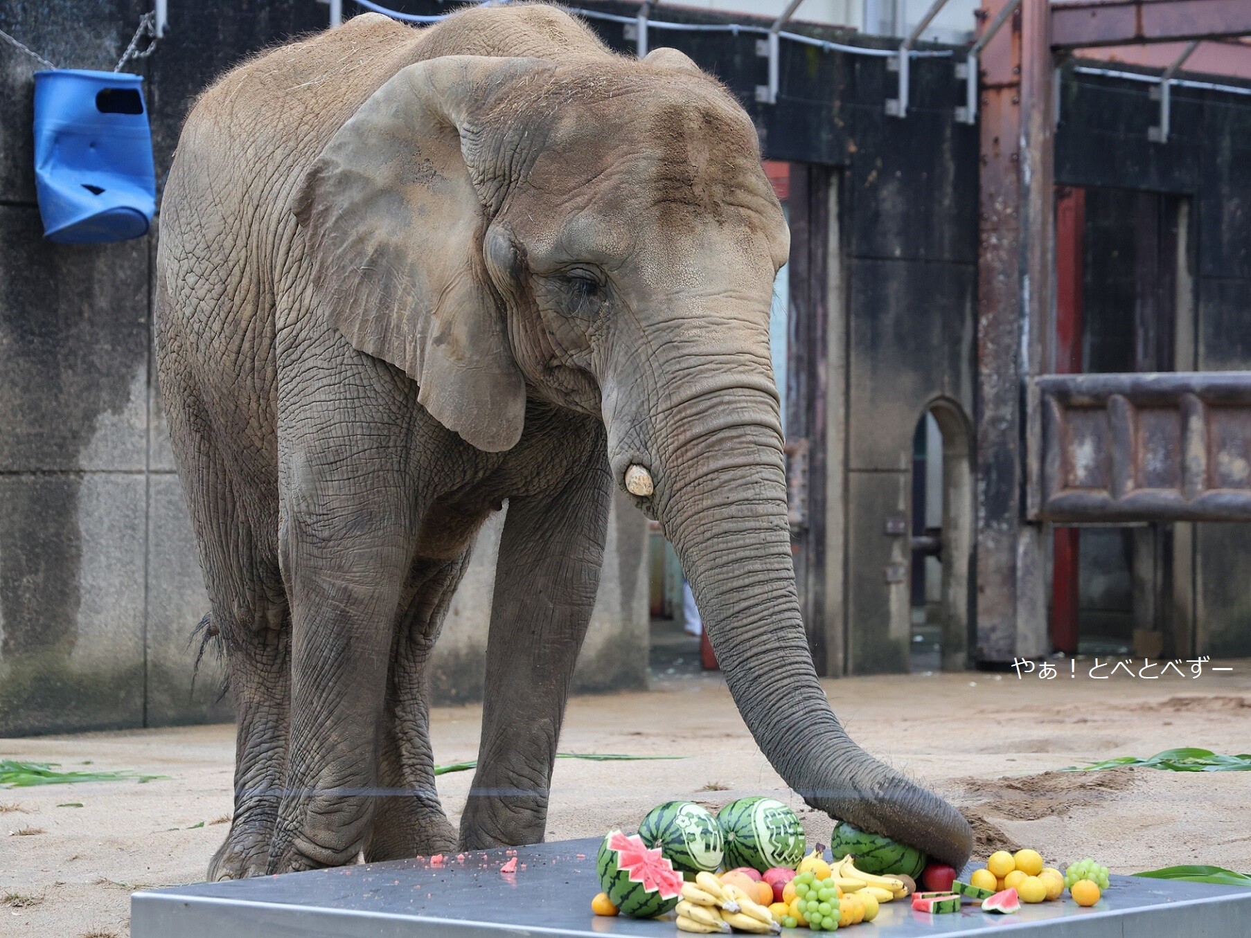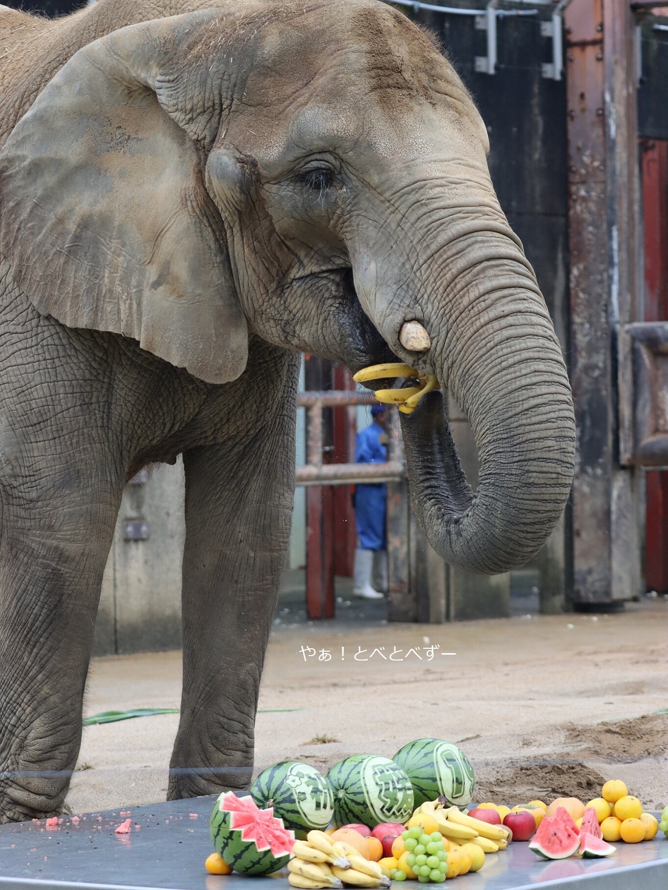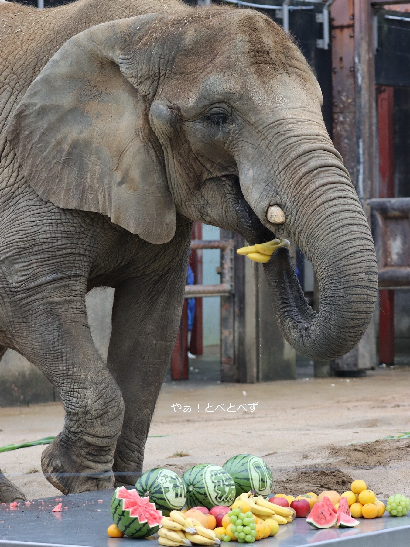 として持って行きました。それにしても、スイカのカービングが見事ですよね!飼育員さんが施したのでしょうかね。凄い!!